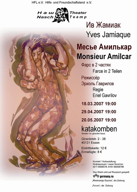 Первый спектакль «Нашего театра» состоялся 17 апреля 2005 года. Это была постановка Эриэля Гаврилова по пьесе Ива Жамиака «Месье Амлькар». Два актёрских состава с успехом сыграли этот спектакль 13 раз на театральных площадках Дюссельдорфа, Дуйсбурга, Эссена.