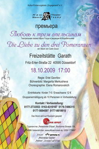 18 октября 2009 состоялась премьера красочной романтической феерии по известной сказке Карло Гоцци «Любовь к трём апельсинам», которую с восторгом приняли и маленькие, и большие зрители. Этот спектакль за два года увидели зрители Дюссельдорфа, Эссена и других городов.